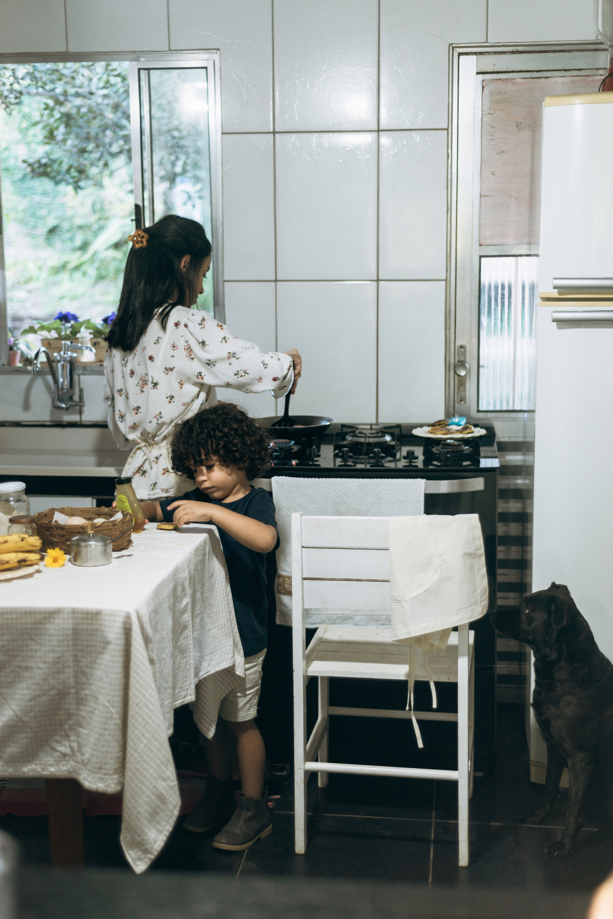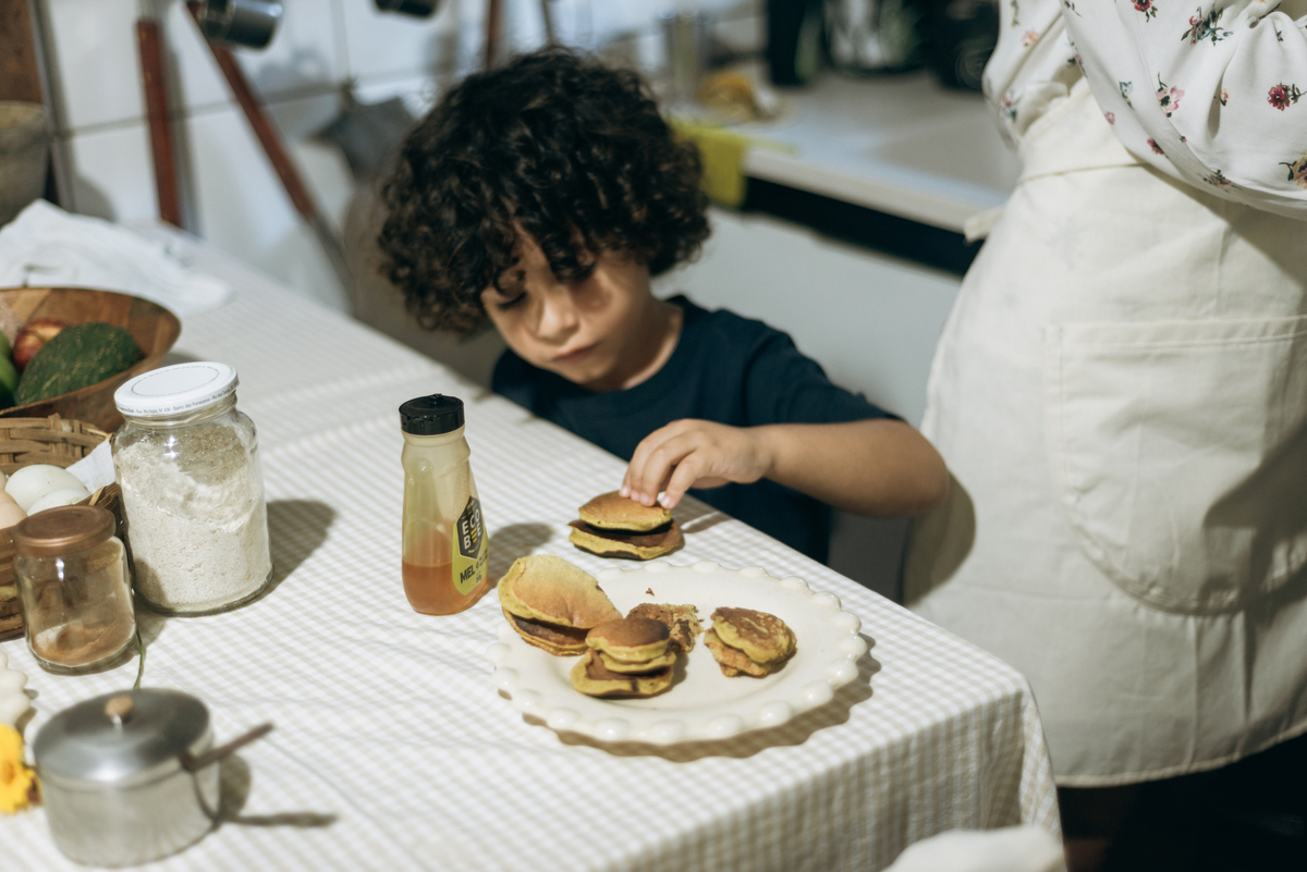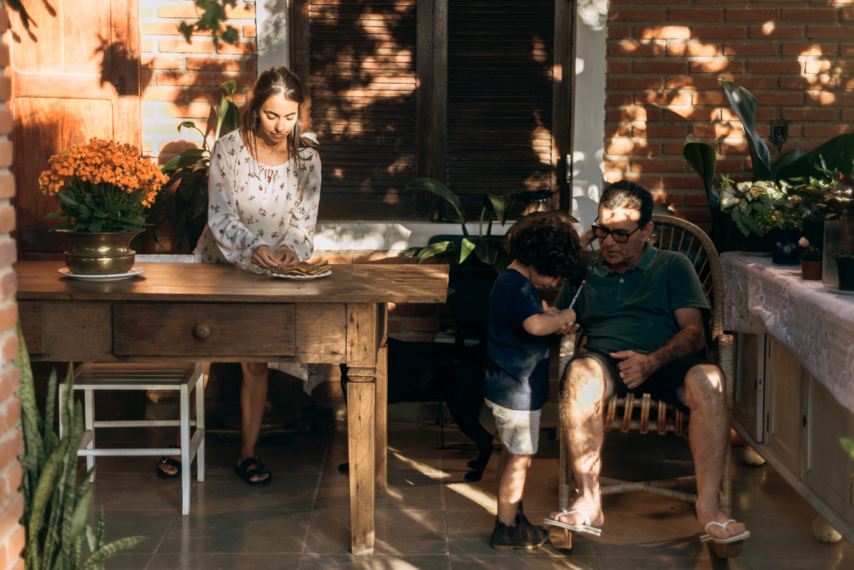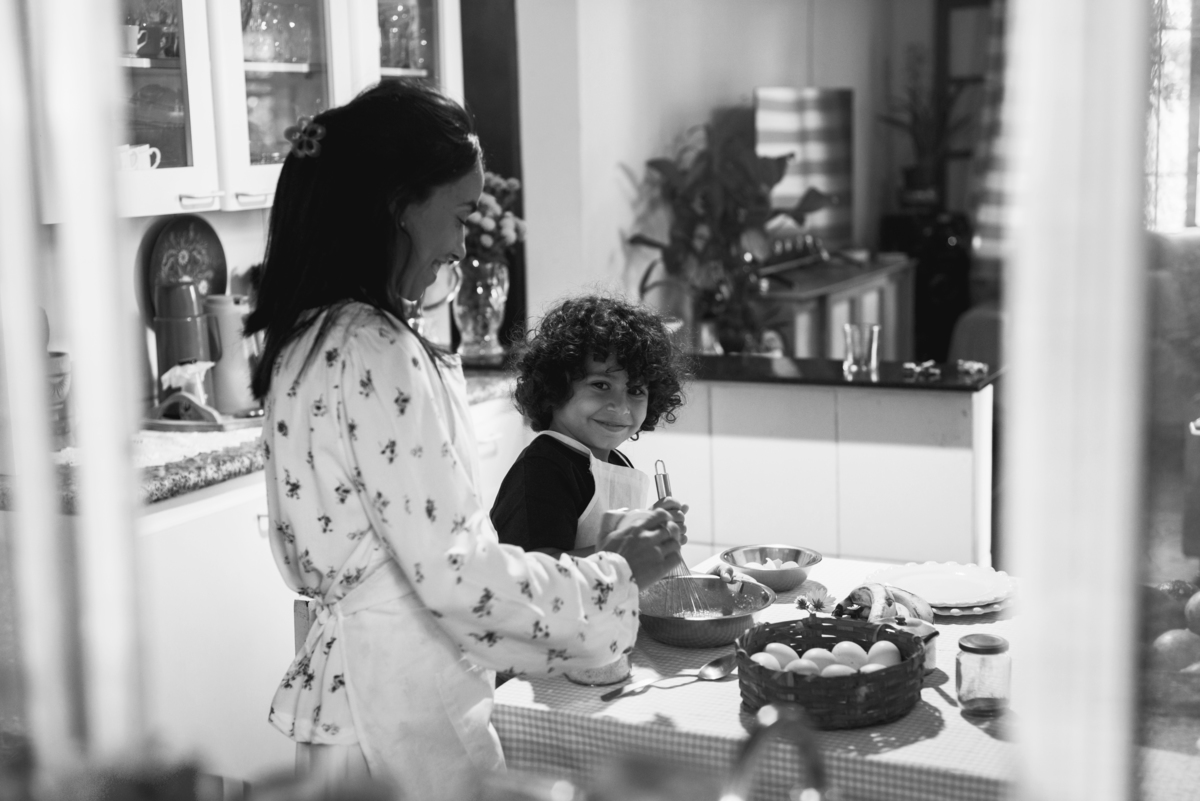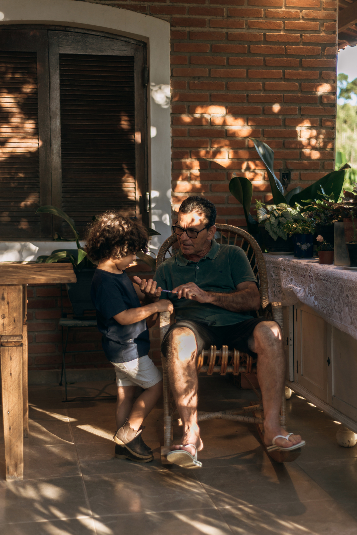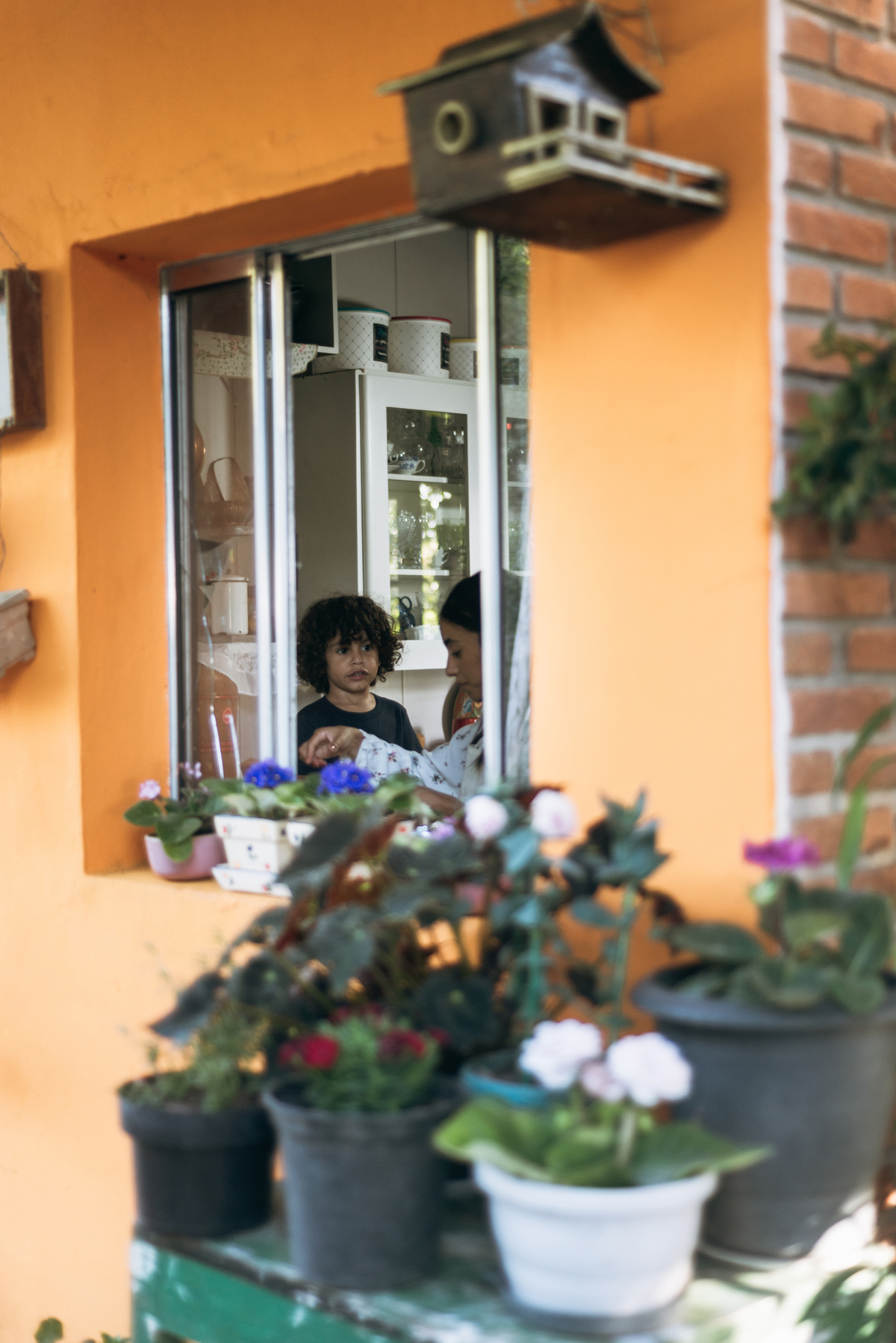 Foi especial registrar Bruna e Pedro. Sem poses, somente a vida acontecendo: a panqueca que eles fazem juntos, o jardim que eles cuidam juntos, os bichinhos que acompanham o crescimento de Pedro e tanto o ensinam sobre a vida. Teve corrida com riso solto, daqueles que não pedem licença. Teve esconde-esconde com passos leves e olhos brilhando de expectativa. Teve mãos que se procuram no meio do caminho e se encontram como quem já sabe o lugar exato de ficar. Teve abraço que é casa. Pedro, com seus quatro anos, habita esse tempo bonito onde tudo é descoberta — e Bruna, com o olhar atento de mãe, sustenta esse mundo com delicadeza e presença. Entre uma brincadeira e outra, existe um fio invisível que costura tudo: o afeto que transborda nos gestos simples. Essa sessão não é sobre fotos. É sobre memória viva. Sobre o agora que, sem fazer barulho, já começa a virar saudade.