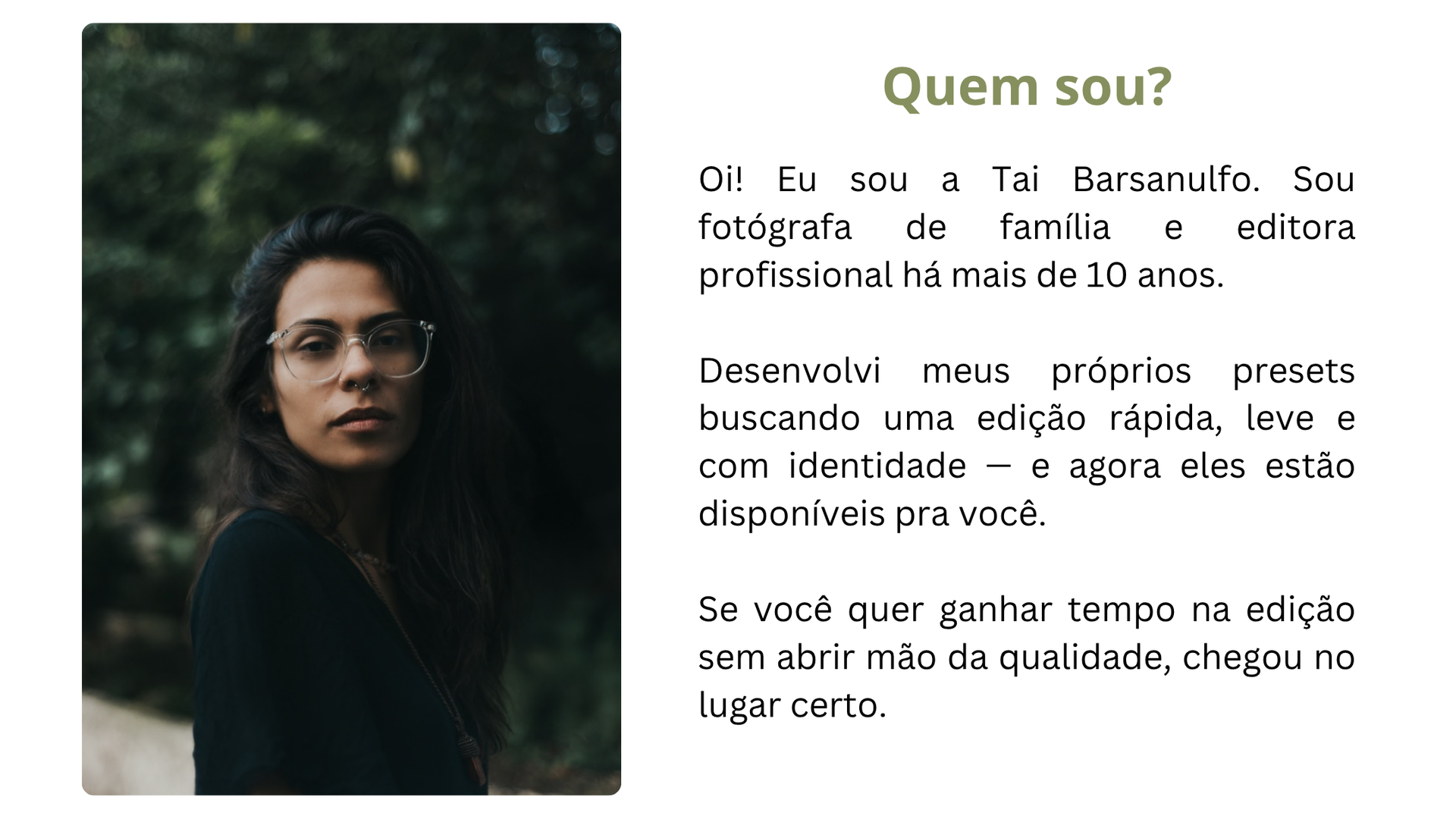 Não! Eu vou te ensinar a ajustar qualquer preset nas suas fotos de acordo com o seu estilo de