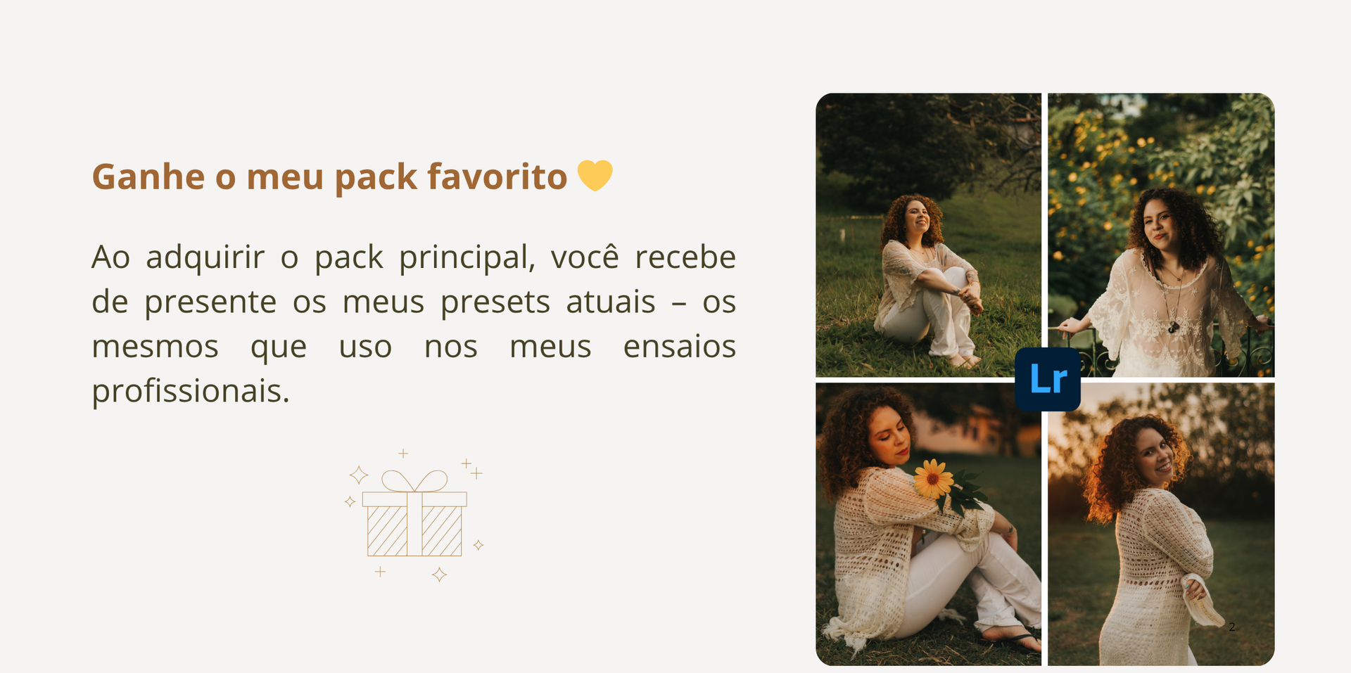 Além dos presets, você receberá uma videoaula exclusiva ensinando passo a passo como ajustá-los para cada uma das suas fotos.